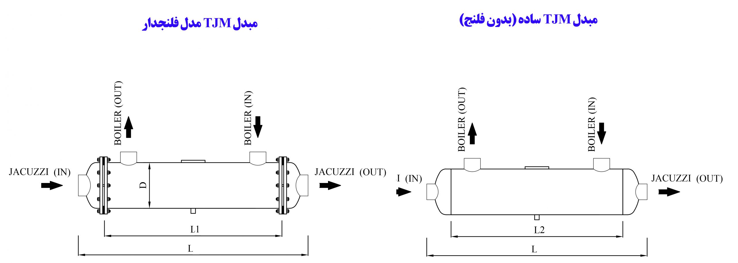 مبدلهاي حرارتي طرح ترموپول مدل TJM بر اساس حجم هاي مختلف جكوزي ها با استفاده از دانش مهندسان خبره و نرم افزار هاي پيشرفته و بروز طراحي مبدلهاي حرارتي مخصوص شرايط كشور عزيزمان محاسبه و توليد شده اند.